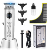 برس تمیز کننده، روغن، پایه شارژ، شانه مخصوص برای اصلاح، کابل USB و 3 عدد شانه